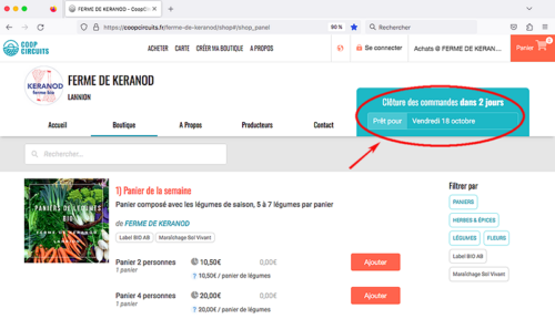 Sélectionnez la date de retrait du panier souhaitée.